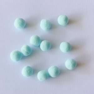 POMPONES AZULES ENFIELTRADOS. CRAFTY UK