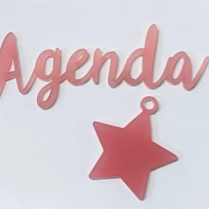 Adorno metacrilato Agenda y charm estrella en rosa translúcido. Detalles Orballo