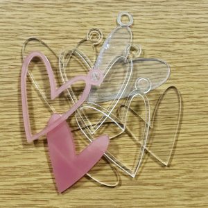 SET DE ADORNOS Y SHAKER METACRILATO CORAZON ROSA TRANSLUCIDO. DETALLES ORBALLO