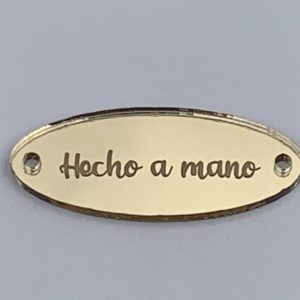 PLACA METACRILATO NO PERSONALIZABLE ESPEJO ORO OVALADA HECHO A MANO. DETALLES ORBALLO