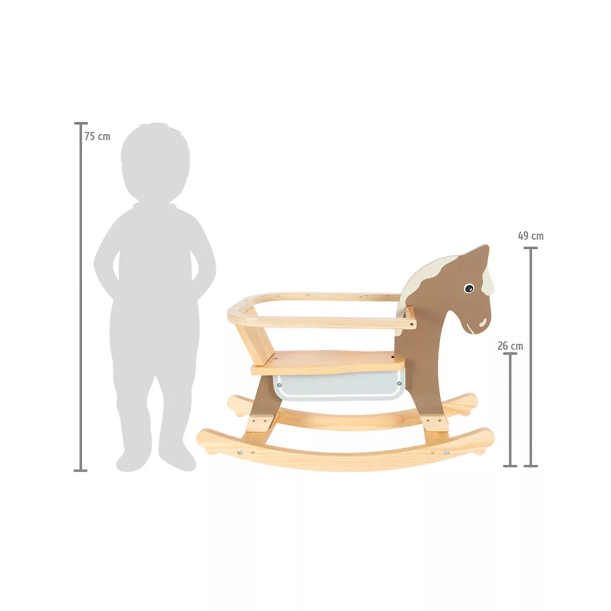 ¡Vamos pequeños jinetes! El caballo balancín de madera maciza es robusto, estable y de una gran calidad. Las asas, el respaldo alto, los topes antivuelco en las correderas y el anillo de protección extraíble proporcionan apoyo y seguridad a los pequeños jinetes. El anillo incluido ofrece a los niños más pequeños la seguridad necesaria y evita que se caigan del caballo balancín. Para los niños mayores, la anilla protectora puede retirarse fácilmente para alargar la vida útil del balancín para así disfrutar de su caballo favorito más años. El caballo balancín combina diversión y juego con movimiento y entrenamiento de la motricidad. Un gran regalo para niñas y niños en su cumpleaños o para Navidad.