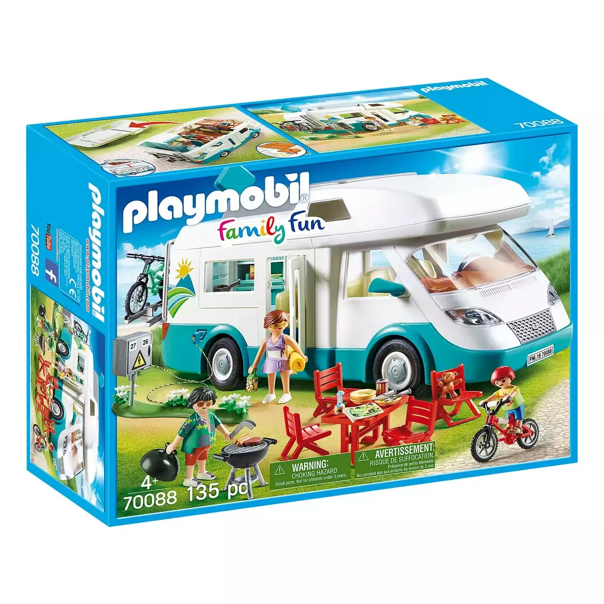 Todo está pensado para disfrutar de unas vacaciones al aire libre. La cafetería de la recepción con terraza es perfecta para charlar y comer un helado bajo sol. La cocina y la zona de aseo proporcionan comodidad para la vida diaria en el camping. Nada más haber montado la tienda de campaña, los veraneantes Playmobil se hacen amigos de la familia de la Caravana de Verano Playmobil. ¿Qué haremos hoy? Los campistas pueden explorar los alrededores con su bicicleta familiar, disfrutar de las olas con su Lancha con Flotadores, asistir a una clase de buceo en la Escuela de Deportes Acuáticos o jugar en el Minigolf. ¡En el camping Playmobil siempre hay algo que hacer!