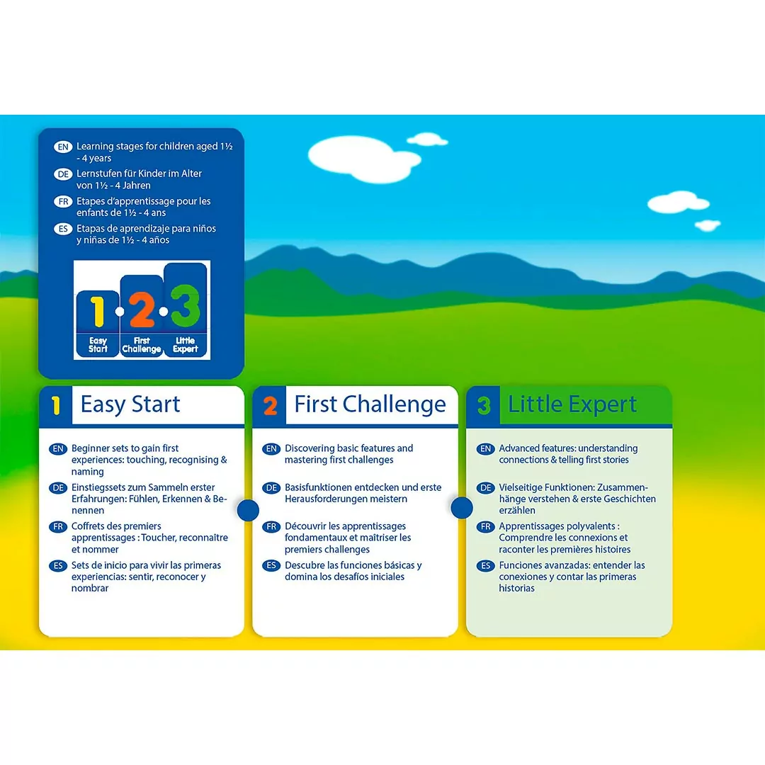 Con el 3er nivel de artículos 1.2.3 Aqua, los pequeños expertos se encontrarán con rompecabezas y otras mecánicas de juego que son totalmente lúdicas para desarrollar la motricidad fina y la comprensión cognitiva de los niños pequeños. Así, a través de las distintas funciones, comienzan a comprender las relaciones causa-efecto.
