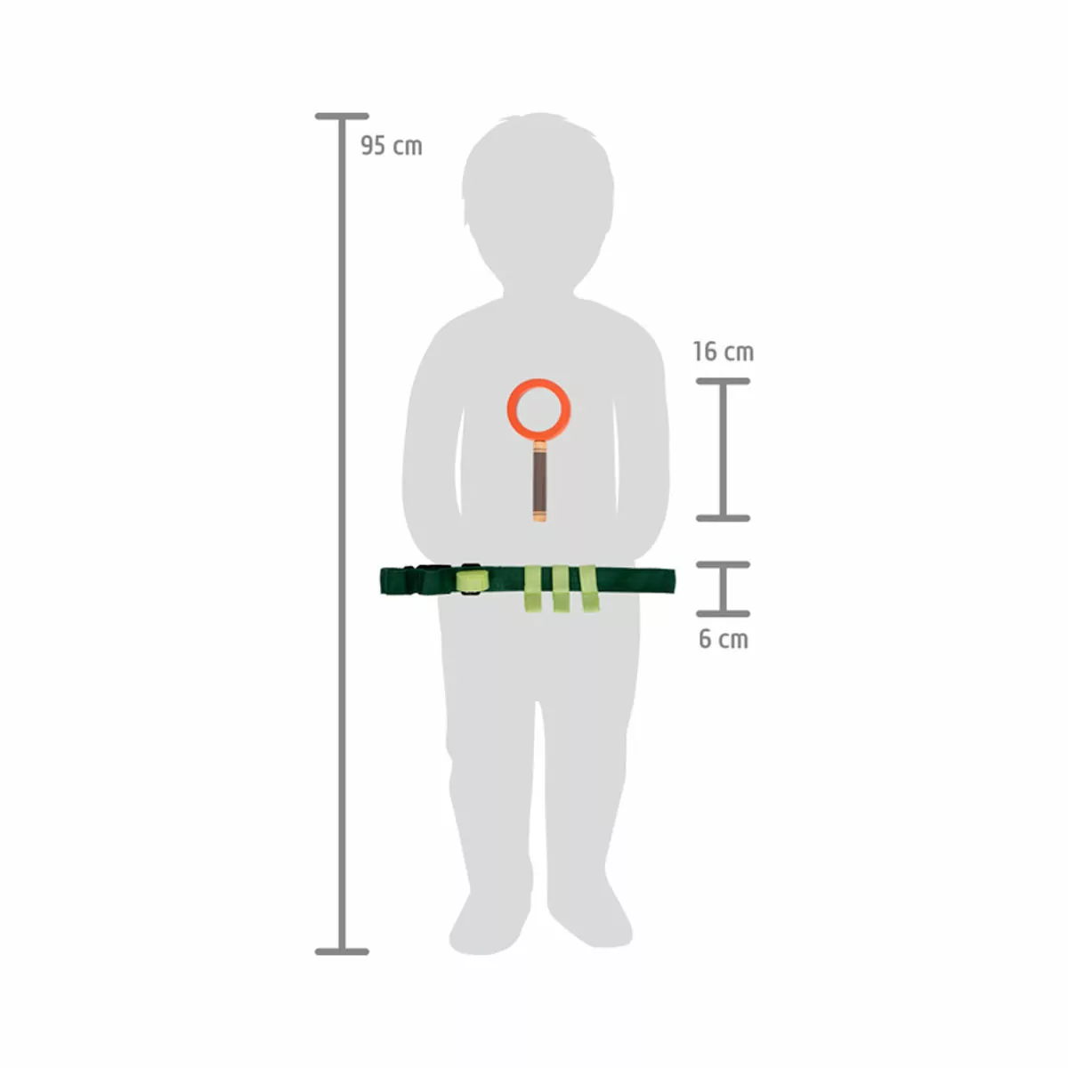 ¡Para los exploradores de la naturaleza más intrépidos! Con este cinturón para exteriores los niños y niñas tendrán a mano todas las herramientas necesarias para poder explorar la naturaleza a fondo. El equipo de exploración, compuesto por un silbato de madera maciza, una lupa, unas pinzas, una brújula, una cuerda y una bolsa de recogida de algodón, puede fijarse fácilmente al robusto cinturón de nailon con hebillas, clips y mosquetones. Práctico: el cinturón es ajustable en tamaño y tiene un cierre rápido/clic.