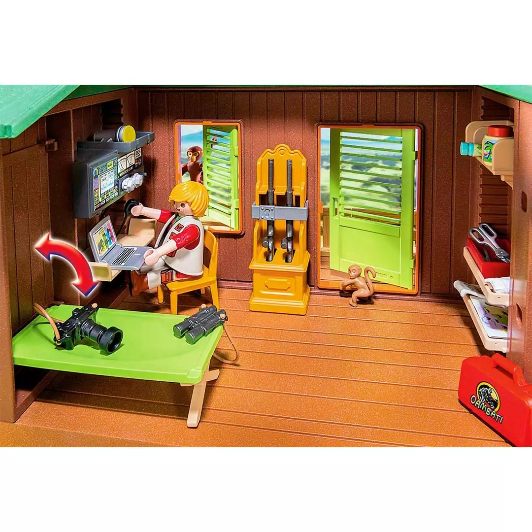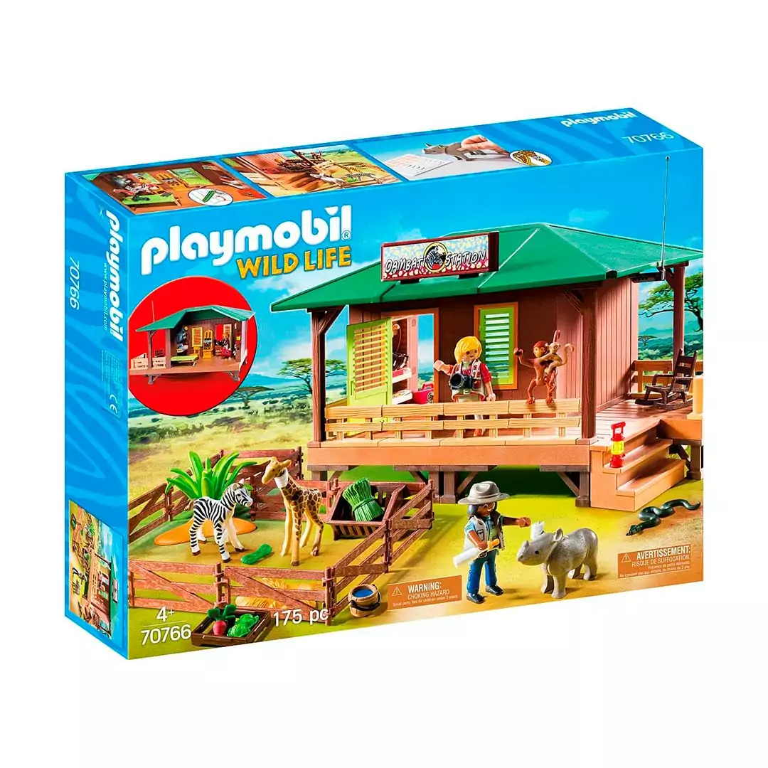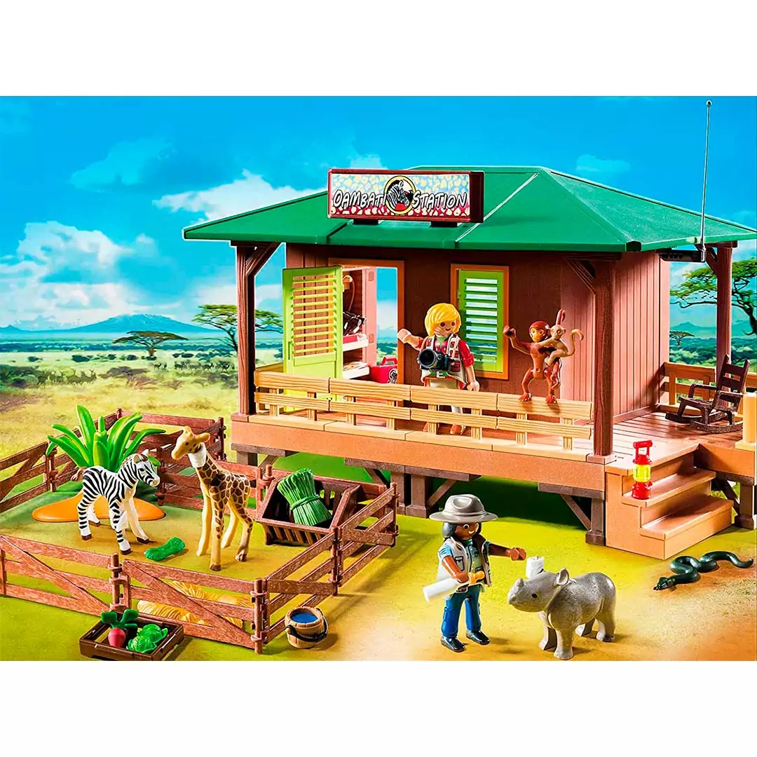 Actualmente, numerosos animales están siendo atendidos y rehabilitados en la estación: 1 bebé rinoceronte, 1 bebé jirafa, 1 potro, 1 serpiente, 1 mono y 1 bebé de mono. Los guardabosques disponen de equipo médico y vendas flexibles y reutilizables para el tratamiento médico. El juego también viene con una hoja de etiquetas con tiritas y vendas que se pueden aplicar a los animales según se prefiera.