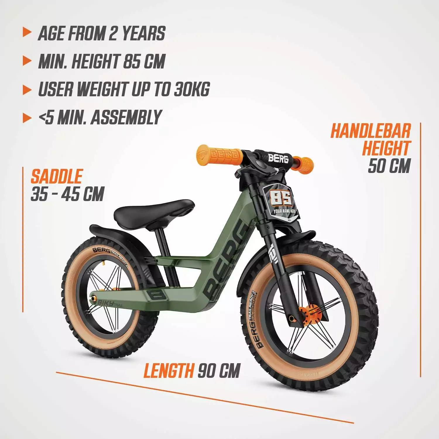 Descubre el emocionante correpasillos BERG BIKY Trail Green con freno de mano, diseñado para niños y niñas a partir de 2 años y medio. Ligero y resistente, este correpasillos sin pedales está construido con un cuadro de magnesio en elegante color verde, ideal para el desarrollo infantil y el aprendizaje del equilibrio. Su montaje rápido en menos de 10 minutos y su asiento ajustable a alturas de 32 cm a 45 cm lo hacen perfecto para niños en crecimiento. Además, cuenta con un reposapiés integrado y un regulador de ángulo de giro para una experiencia de conducción segura y personalizada. Incluye freno de mano para mayor seguridad y robustos guardabarros. No te pierdas la oportunidad de vivir la emoción de ver a tus hijos explorar el mundo en su BERG BIKY Trail Green.