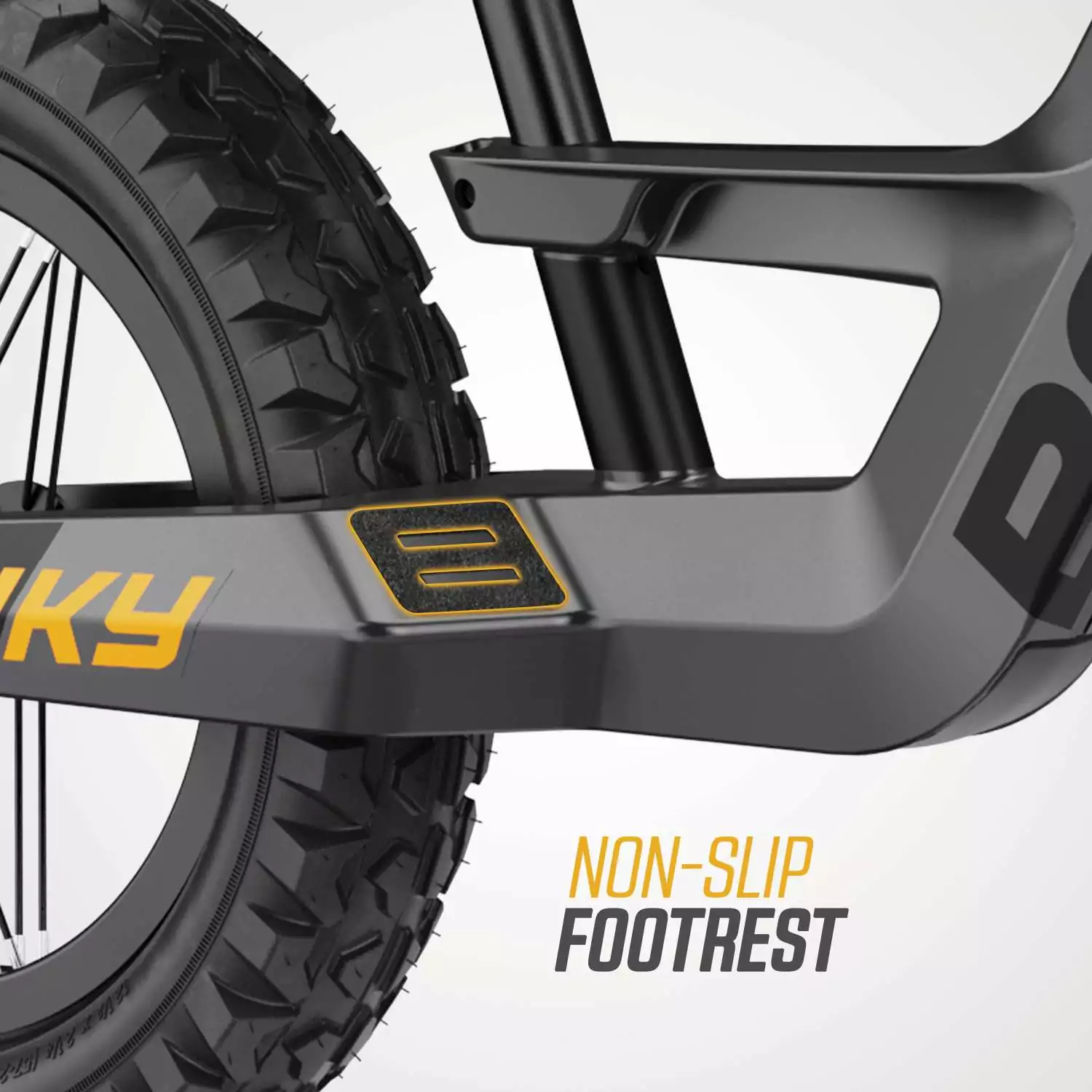 • Reposapiés antideslizantes para apoyar los pies durante la conducción.