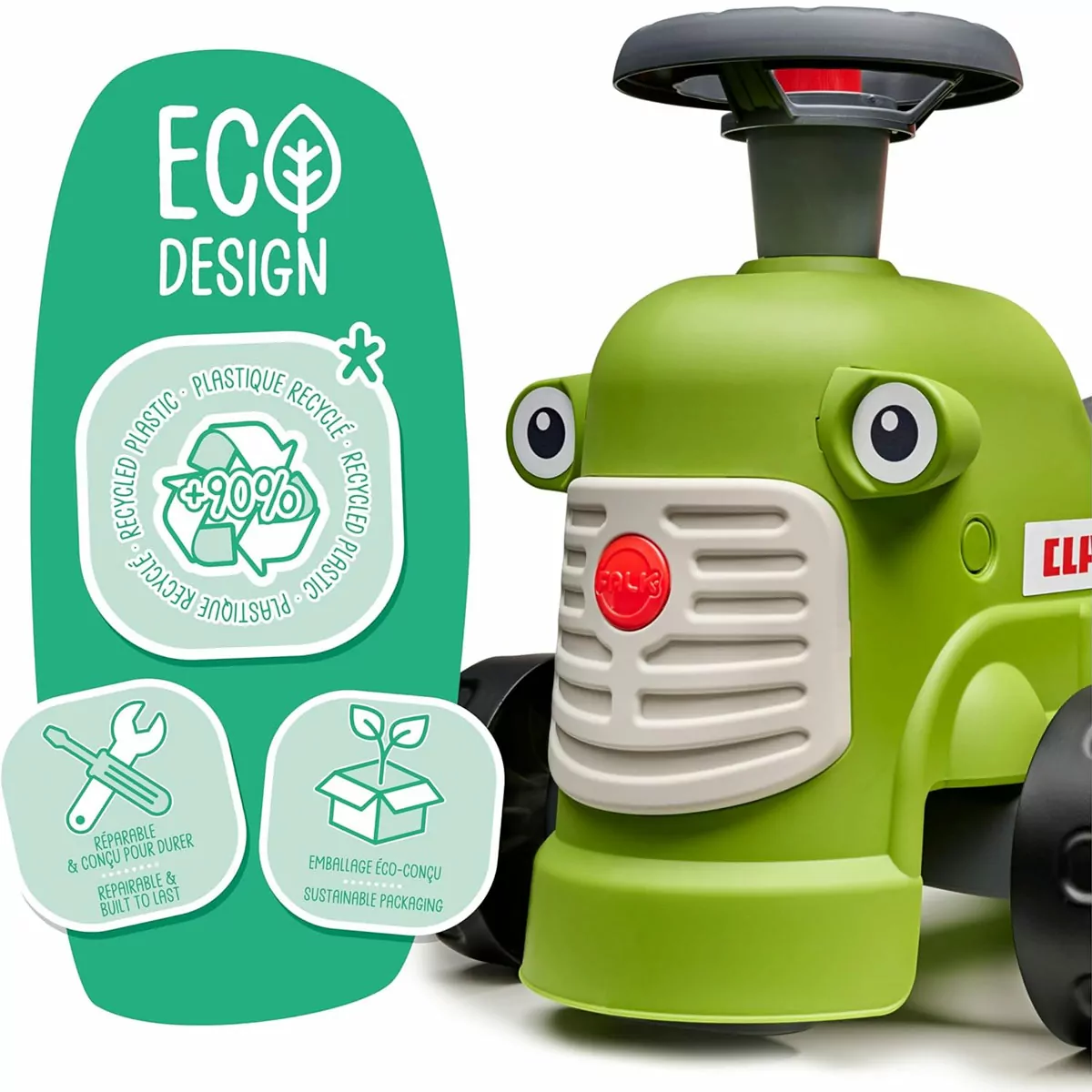 ¡Pequeño y bonito tractor Claas lleno de trucos! El correpasillos más completo con pala, retroexcavadora y remolque. Gracias a sus bonitos colores, su pala, su pequeña llave de sonido y su volante direccional con bocina desarrollará sus habilidades psico-motrices. Un pequeño correpasillos con el que Falk rinde homenaje a 75 años de know-how mientras mira positivamente hacia el futuro de nuestros pequeños con acciones eco sostenibles. Por eso este correpasillos Claas está hecho de plástico reciclado al 90% y fabricado íntegramente en Francia con mucho mimo.