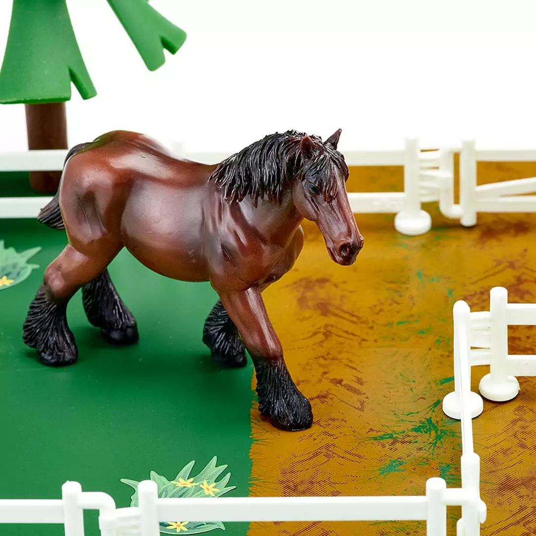 El set es una extensión ideal de SIKUWORLD, pero también ofrece la diversión de tu propio mundo de juego. La granja de caballos SIKUWORLD crea inspiración para los niños para un nuevo mundo de juegos con animales y vida rural. Los caballos de pie en el prado saludan a los amigos de los caballos con un fuerte relincho: el próximo viaje es inminente. Pero antes de eso todavía hay mucho por hacer en el patio. Con el tractor Fendt 939 incluido y la agarradera de pacas, las pacas de heno se almacenan en el pajar. Los elementos de construcción en el estilo de entramado de madera se pueden unir de manera intuitiva y fácil para los niños con el sistema de complemento y también se pueden unir y convertir de acuerdo con sus propias ideas. El edificio de dos pisos tiene un pasaje, y también se pueden usar los establos de caballos y el pajar.