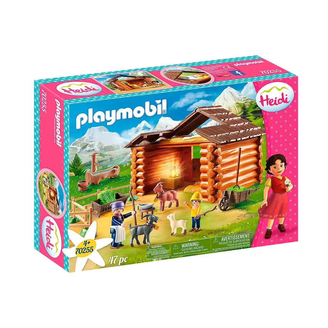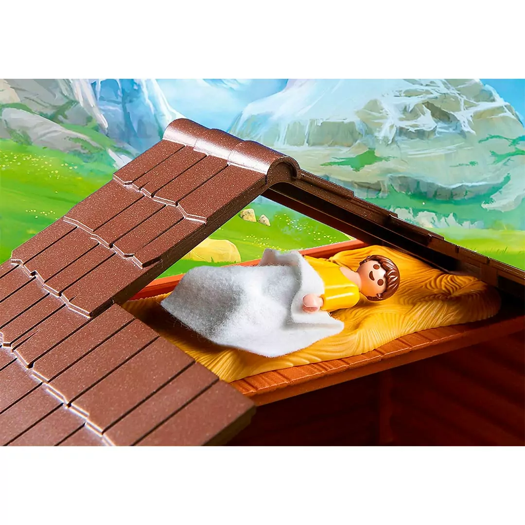 ¡¿Quién no conoce la encantadora historia de Heidi?! Las aventuras que Heidi vive junto a sus amigos de la serie de anime homónima se pueden recrear con el Establo de Cabras de Pedro de Playmobil. En él encontrarás al mejor amigo de Heidi junto a su abuela y tres cabras. Protegidos por la valla, los animales pastan en paz afuera del establo, mientras Pedro se pone cómodo dentro de la cama de paja. Por la noche, la pequeña lámpara proporciona una luz agradable. En las montañas, historias emocionantes con personajes detallados esperan a los fanáticos de la serie de televisión.