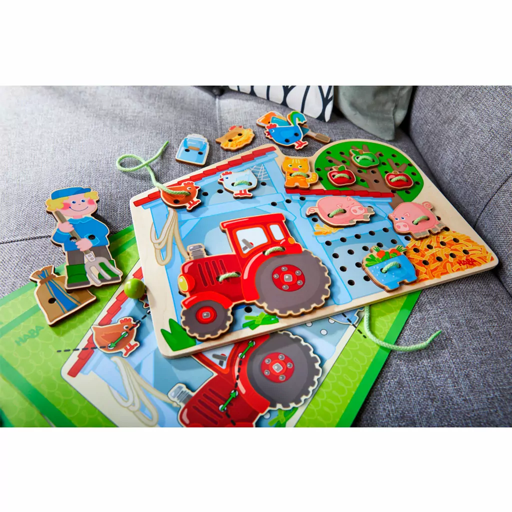 Una alegre diversión de ensartar para todos nuestros pequeños fans de las granjas: las fichas pueden ensartarse a la granja libremente o siguiendo la plantilla. De esta manera va formándose poco a poco una escena divertida con muchos animales.