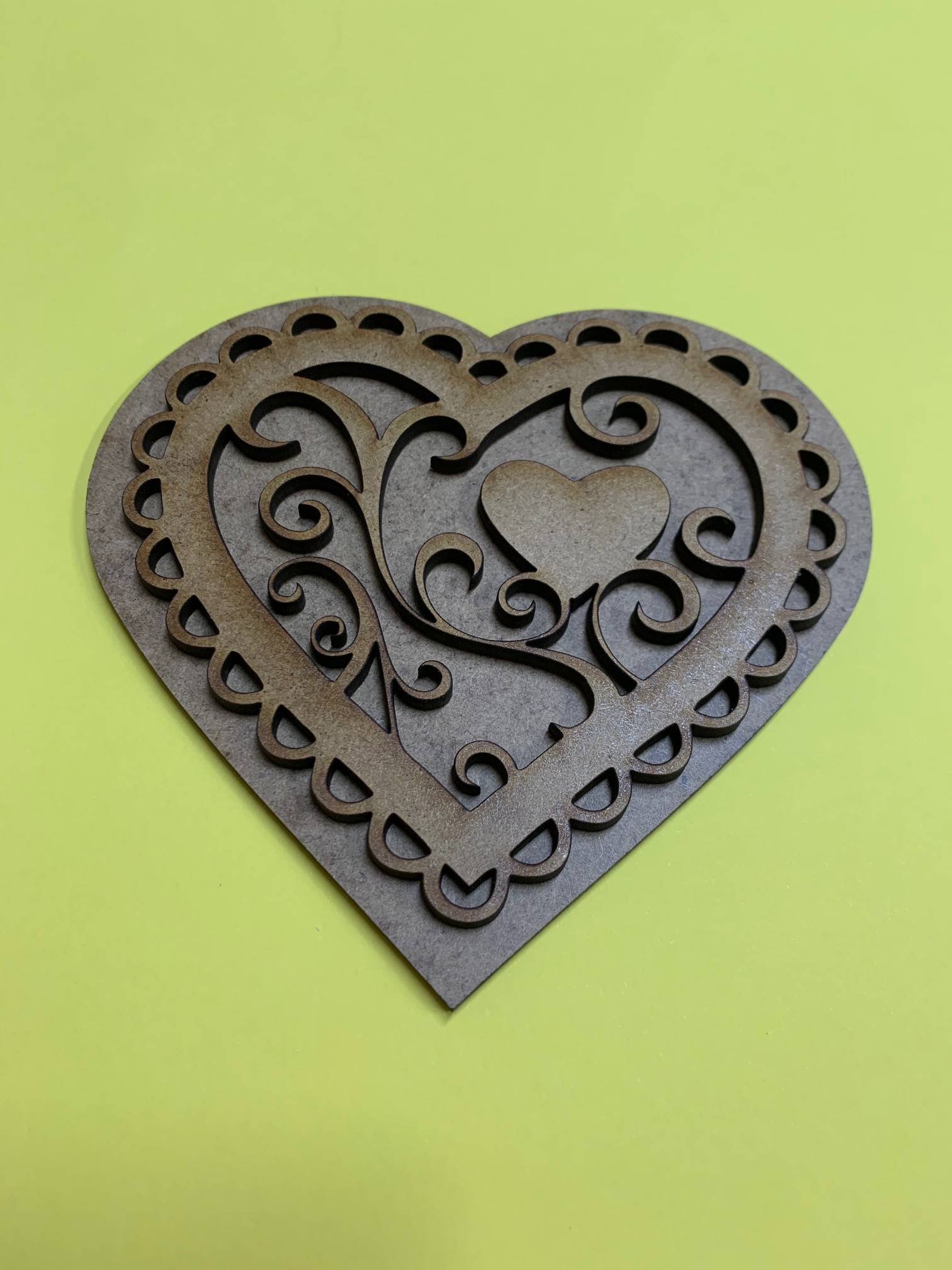 Medidas: Base: 11 cm de alto y 11.5 cm de alto. Corazón calado: 9.5 cm de alto y 10 cm de ancho