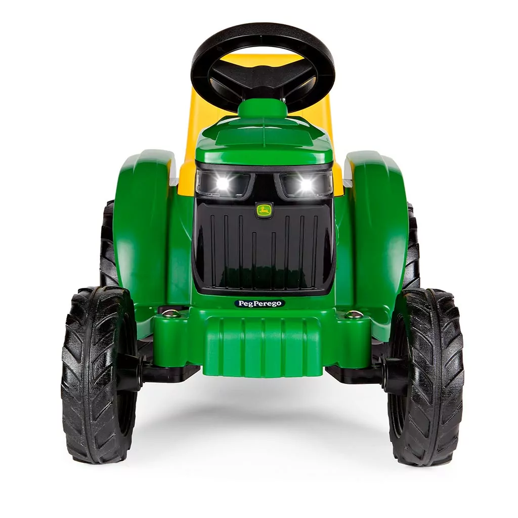El tractor infantil con batería recargable John Deere Mini Tractor es perfecto para sus primeras experiencias de juego. Puede utilizarse a partir de 1 año de edad. Cómodo y fácil de conducir gracias a sus 2 ruedas motrices y a la potencia del motor de 25 W. Viaja a unos 2,7 km/h y regala multitud de momentos divertidos, dentro y fuera de casa.