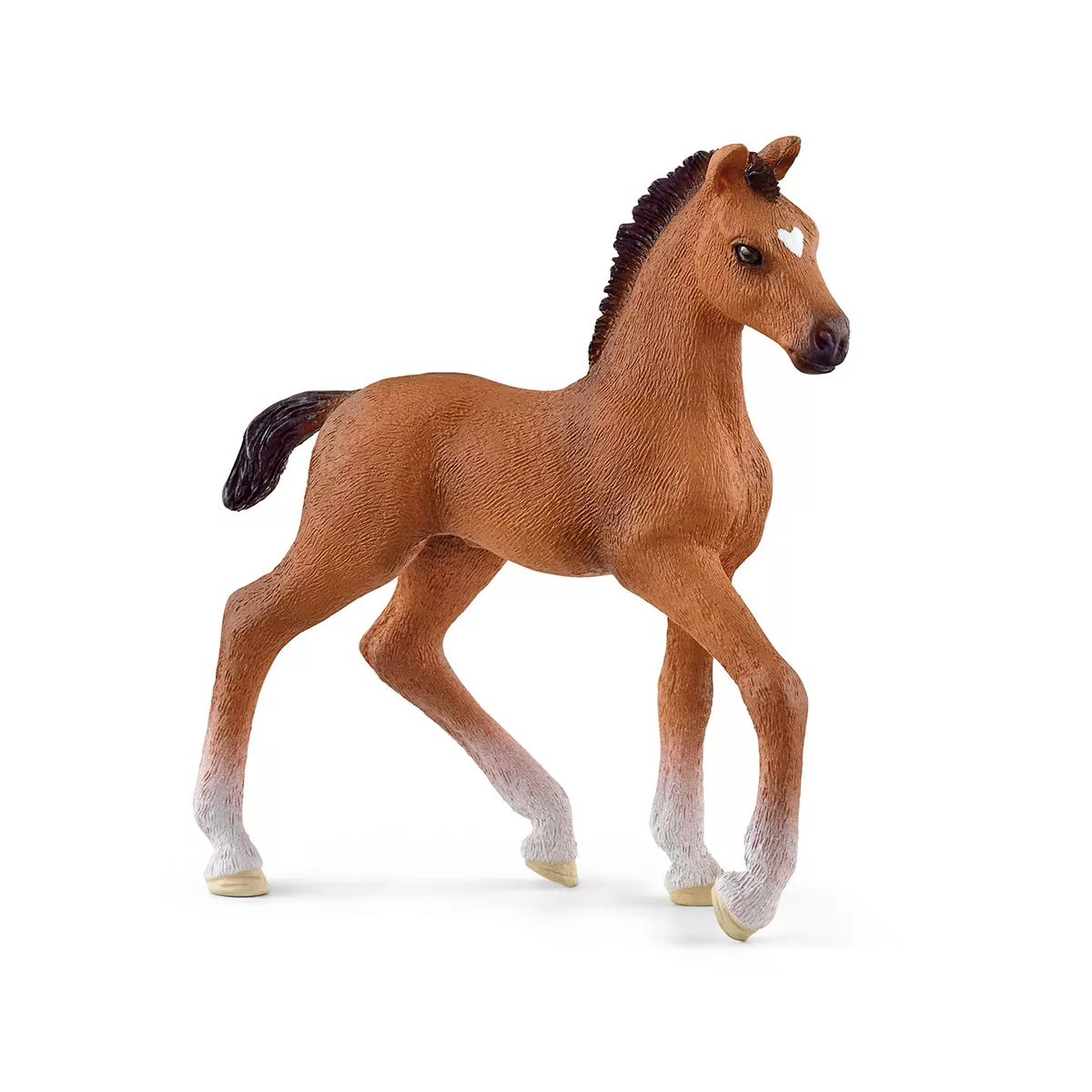 En el Potro Oldenburgo de schleich® HORSE CLUB se vislumbra el tamaño que alcanzará de mayor en la longitud de sus patas. Este joven caballo tiene patas de adulto casi desde pequeño, lo que facilita la compra de zapatos. Por eso, y gracias a su naturaleza nórdica y relajada, esta raza equina es especialmente adecuada para los principiantes en equitación. Pero también los profesionales pueden atreverse con los obstáculos más grandes. Desde pequeños obstáculos, como el microondas, hasta los grandes bidones de recogida de agua en el exterior del jardín, nuestro poni puede con todo desde el primer día. En algún momento, puede que incluso consiga saltar tan alto que toque las nubes… ¿Lo has probado?