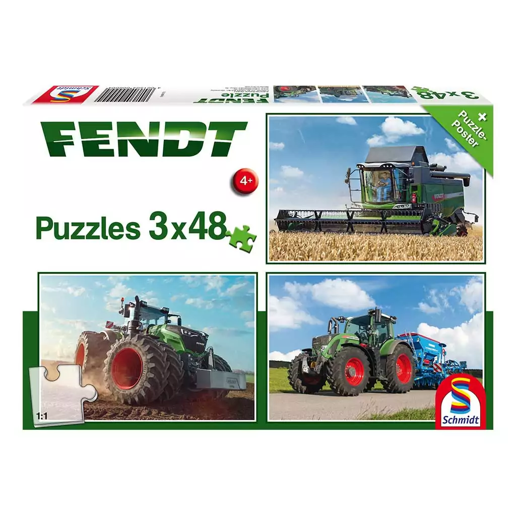 Pack formado por 3 puzzles de 48 piezas cada uno. Cada puzzle muestra una escena de las diferentes labores en el campo que realiza un Tractor Fendt 1050 Vario. Los peques se lo pasarán en grande juntando sus piezas.