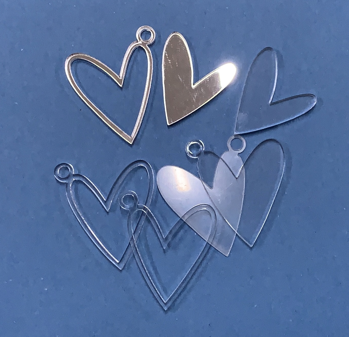 SET DE ADORNOS Y SHAKER METACRILATO CORAZON ESPEJO PLATA. DETALLES ORBALLO