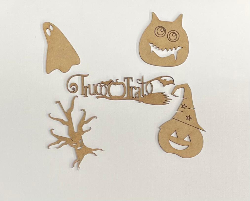 Set maderitas Truco o Trato Halloween. Detalles Orballo
