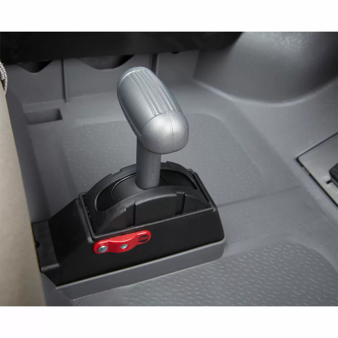 La palanca de cambio permite elegir entre dos velocidades de desplazamiento (5 u 10 km/h aproximadamente) y una marcha atrás. La velocidad más rápida se puede bloquear hasta que el niño se haya familiarizado con la conducción.