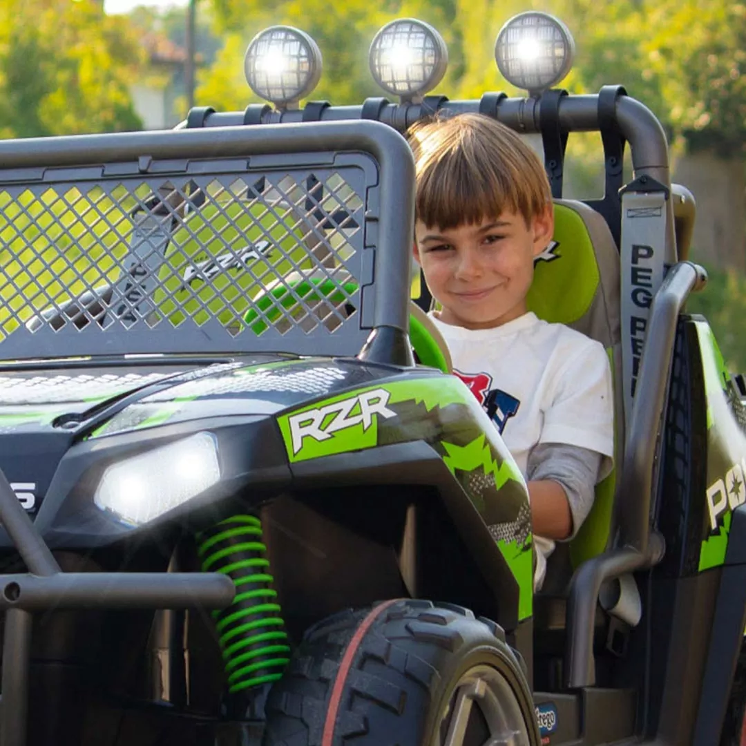 Polaris Ranger RZR Green Shadow es el potente todoterreno eléctrico biplaza para niños aventureros a partir de 6 años que alcanza los 10 km/h. Sus potentes ruedas son aptas para cualquier tipo de terreno, pueden superar con facilidad pendientes cercanas al 17 % y moverse sobre los terrenos más irregulares. Funciona con una batería recargable de 24V/12Ah/300Wh. Ágil y robusto, diseñado para vivir aventuras sin límites.