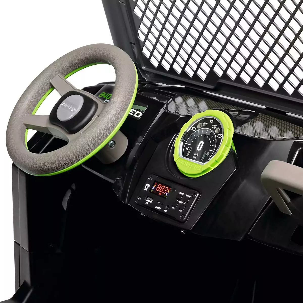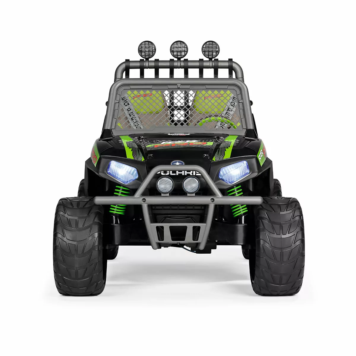 Polaris Ranger RZR Pro Green Shadow es el potente todoterreno eléctrico biplaza para niños aventureros a partir de 6 años que alcanza los 12 km/h. Sus potentes ruedas son aptas para cualquier tipo de terreno, pueden superar con facilidad pendientes cercanas al 17 % y moverse sobre los terrenos más irregulares. Funciona con una batería recargable de 24V/12Ah/300Wh. Ágil y robusto, diseñado para vivir aventuras sin límites.