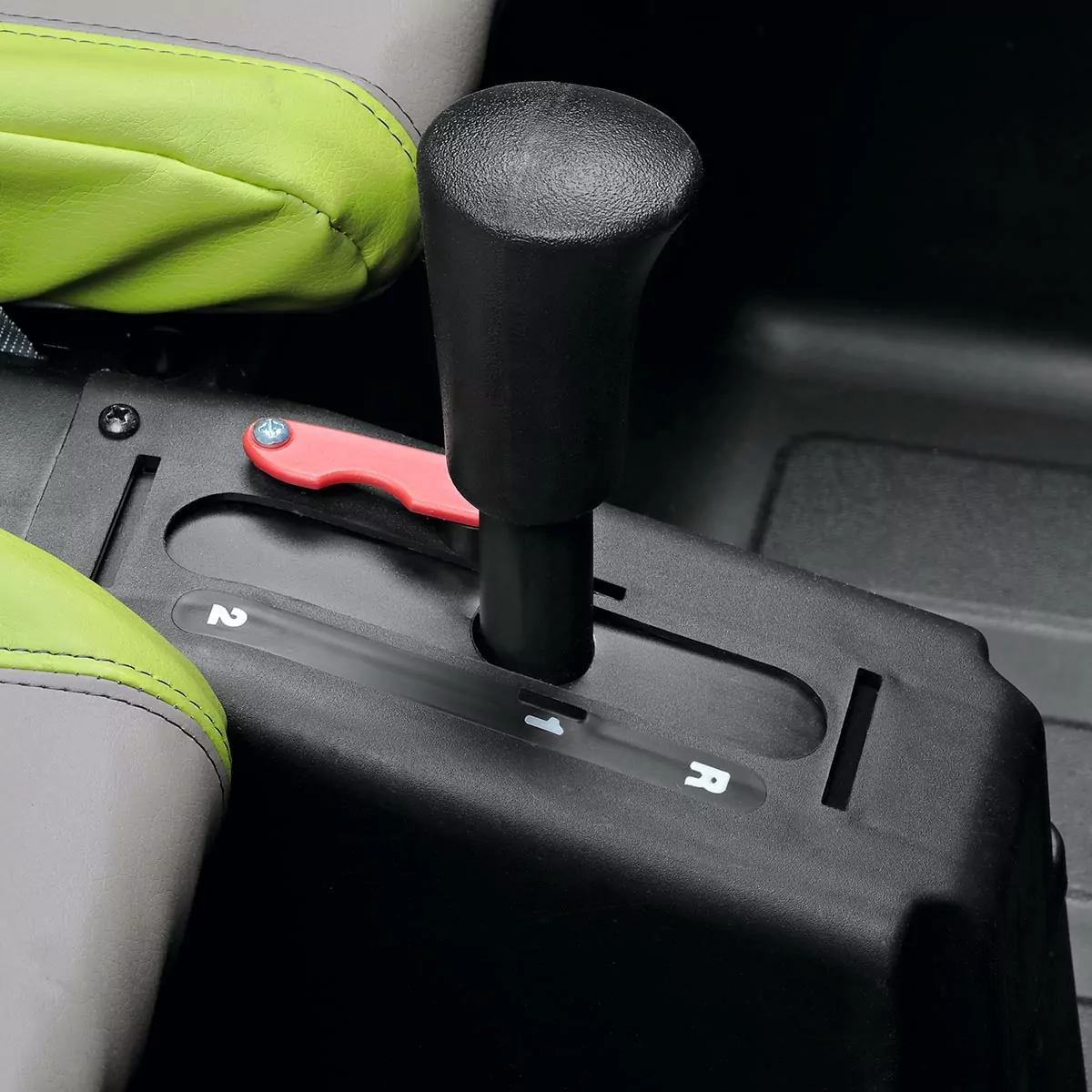 La palanca de cambio permite elegir entre dos velocidades de desplazamiento (6 u 12 km/h aproximadamente) y una marcha atrás. La velocidad más rápida se puede bloquear hasta que el niño se haya familiarizado con la conducción.