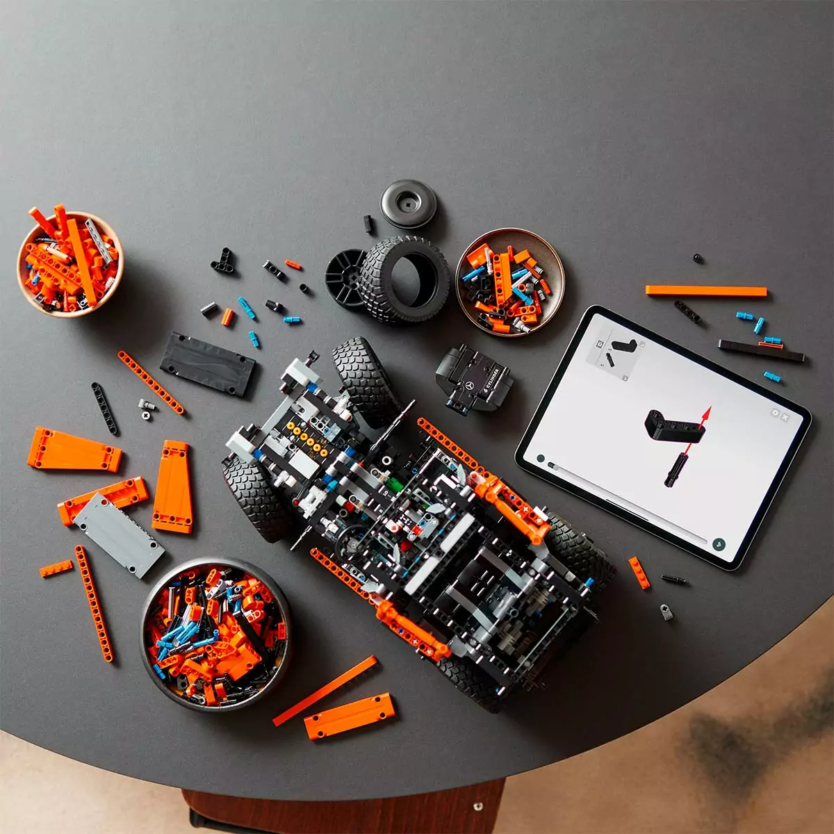 Celebra el 45 aniversario de uno de los todoterrenos más admirados del mundo con el kit de construcción de maquetas para adultos LEGO Technic Mercedes-Benz G 500 PROFESSIONAL Line. Esta versión en maqueta del icónico Clase G cuenta con infinidad de características y funciones de gran realismo para acelerarle el pulso a cualquier fan de Mercedes-Benz. Tómate tu tiempo para dar forma a los detalles, como el mecanismo de dirección y la suspensión elevada. Abre el capó para echar un vistazo al motor de 6 cilindros en línea. Luego prueba tanto la caja de cambios (con posiciones de conducción, punto muerto y marcha atrás) como los 2 bloqueos de diferenciales antes de abrir las puertas para ver el detallado interior. A los aventureros les encantará descubrir la escalera, la rueda de repuesto, la baca y más accesorios, y abrir la puerta trasera y el capó. Esta maqueta de coche LEGO Technic para adultos, un óptimo regalo para hombres y mujeres fans de Mercedes-Benz, es una pieza de exposición idónea como decoración del hogar o la oficina que disfrutarás construyendo.