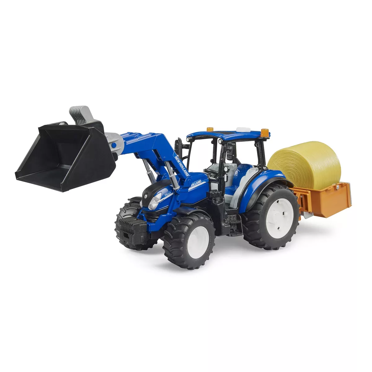 Tractor New Holland T5.120 con Pala, Caja de Carga y Horquillas – Ref. Bruder 2187